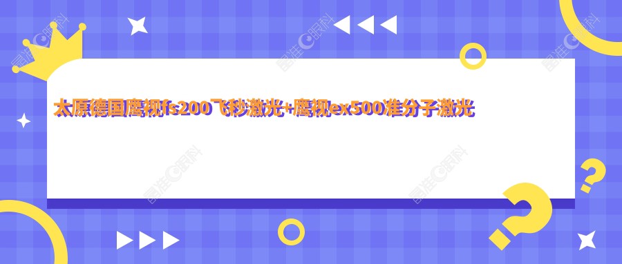 在太原,很多人选取德国鹰视fs200飞秒激光+鹰视ex500准分子激光。2024年,太原各大眼科医院推出了很多种德国鹰视fs200飞秒激光+鹰视ex500准分子激光方案,包括德国蔡司smile3 0半飞秒