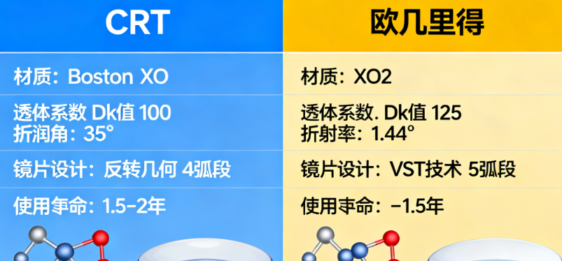 CRT和欧几里得都是通过夜间佩戴改变角膜曲率的非手术矫正方式,但核心差异体现在五个维度: