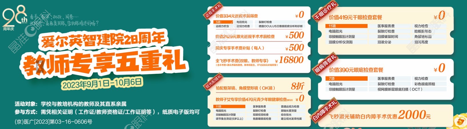 北京爱尔英智眼科医院收费高吗?不高,因为医院目前正在搞活动,从9月1日开始截止到10月11日在北京英智爱尔眼科医院换晶体费用每个人补贴500