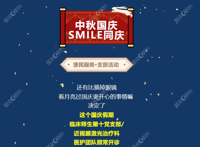 中山大学中山眼科中心的官方发布新消息,2023年的中秋、国庆假期,中山眼科的近视眼激光治疗科医护团队照常开诊!中秋、国庆、周末加班开诊院区是中山眼科珠江新城院区,下午6点放号可预约