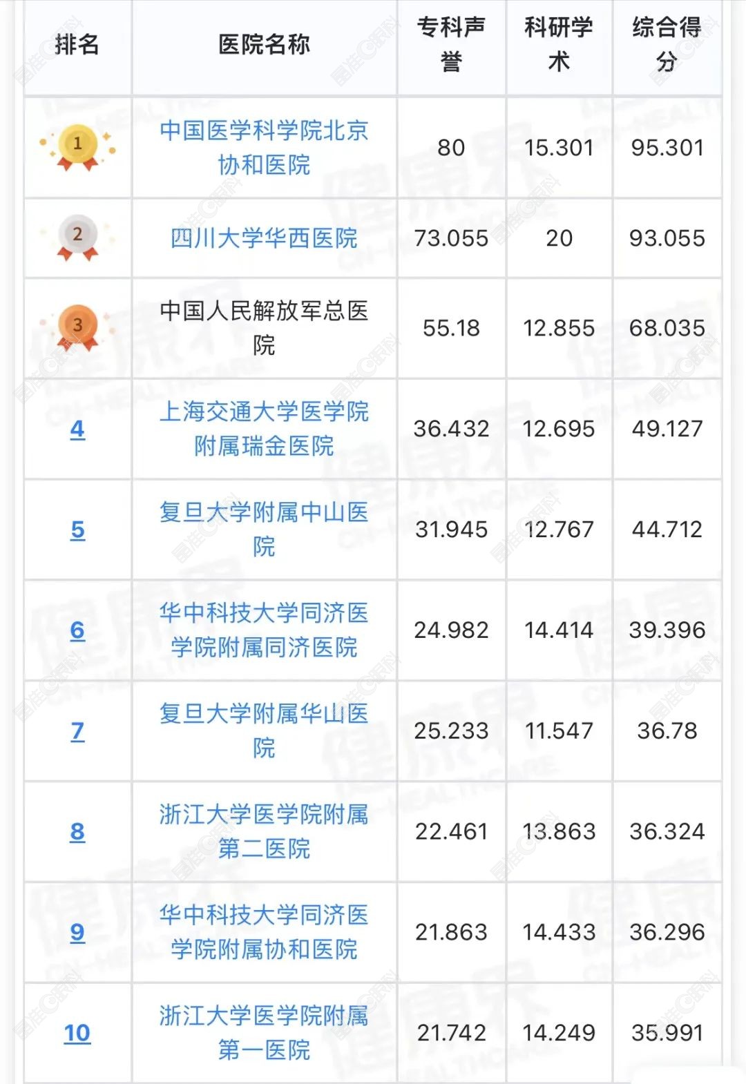 复旦版2022年度中国医院眼科排行榜前10:中山眼科、北京同仁